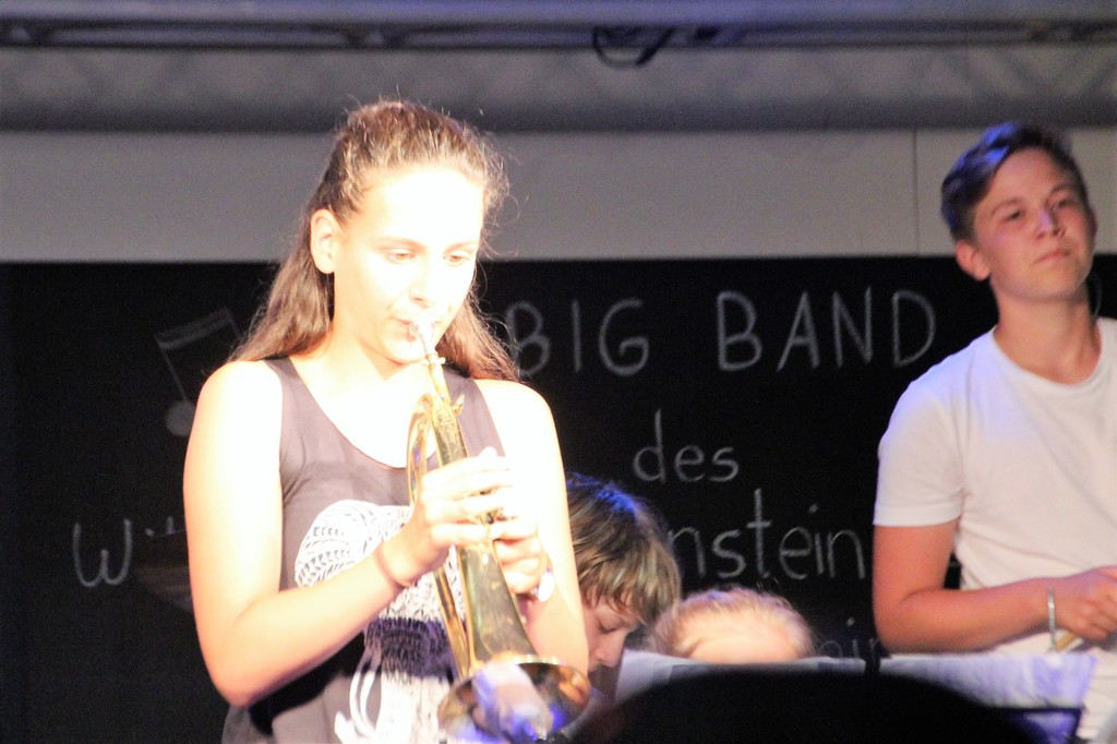 Mit viel Elan leiteten die „Jazz-Youngsters“ von Thomas Urban den zweiten Teil des Konzerts ein und machten klar, dass die „große“ Big Band mit gutem Nachwuchs rechnen kann. Diese sorgte mit feurigen Rhythmen aus Swing und Funk für weitere gute Laune. Dabei hatten Thomas Urban und seine Big Band mit „In the Mood“ auch einen echten Jazzklassiker dabei, den sie schwungvoll und dynamisch abwechslungsreich im Stil von Glenn Miller aufführten. Ein wunderbares Hörerlebnis gestaltete Ronja Eppel mit ihrer sicheren und ausdrucksstarken Stimme; begleitet wurde sie dabei gekonnt von Johannes Betzler am Klavier und Cedric Cauth mit der Cajon („Free Fallin“ und „Talking about Revolution“).