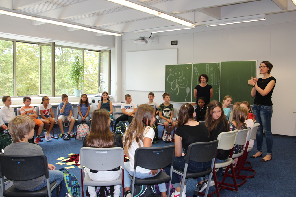 Anschließend informierte Herr Dornblüth die Eltern noch über weitere organisatorische Dinge, während die Klassen mit ihren Lehrern die ersten 45 Minuten im neuen Klassenzimmer verbrachten.
