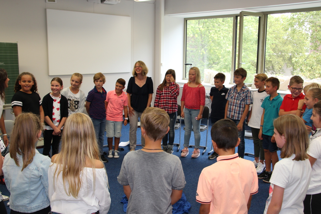 Nun kam der aufregendste Teil für die neuen Schüler: Sie wurden einzeln nach vorne gerufen und von ihren Klassenlehrerteams begrüßt. Die Klassenlehrer der 5a sind Uta Hille und Susanne Bär, für die 5 b Birgit Beising und Carmen Lenz, für die 5c Fabienne Wrobel und Anna Schmidt und für die 5d Antje Kessel und Alexandra Schorer.