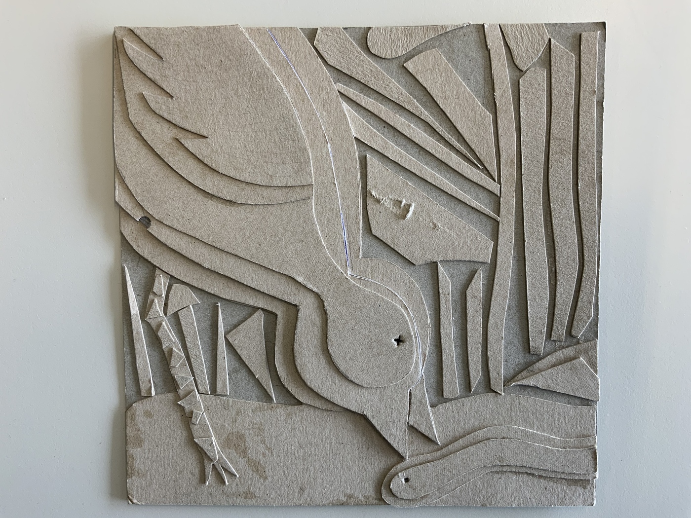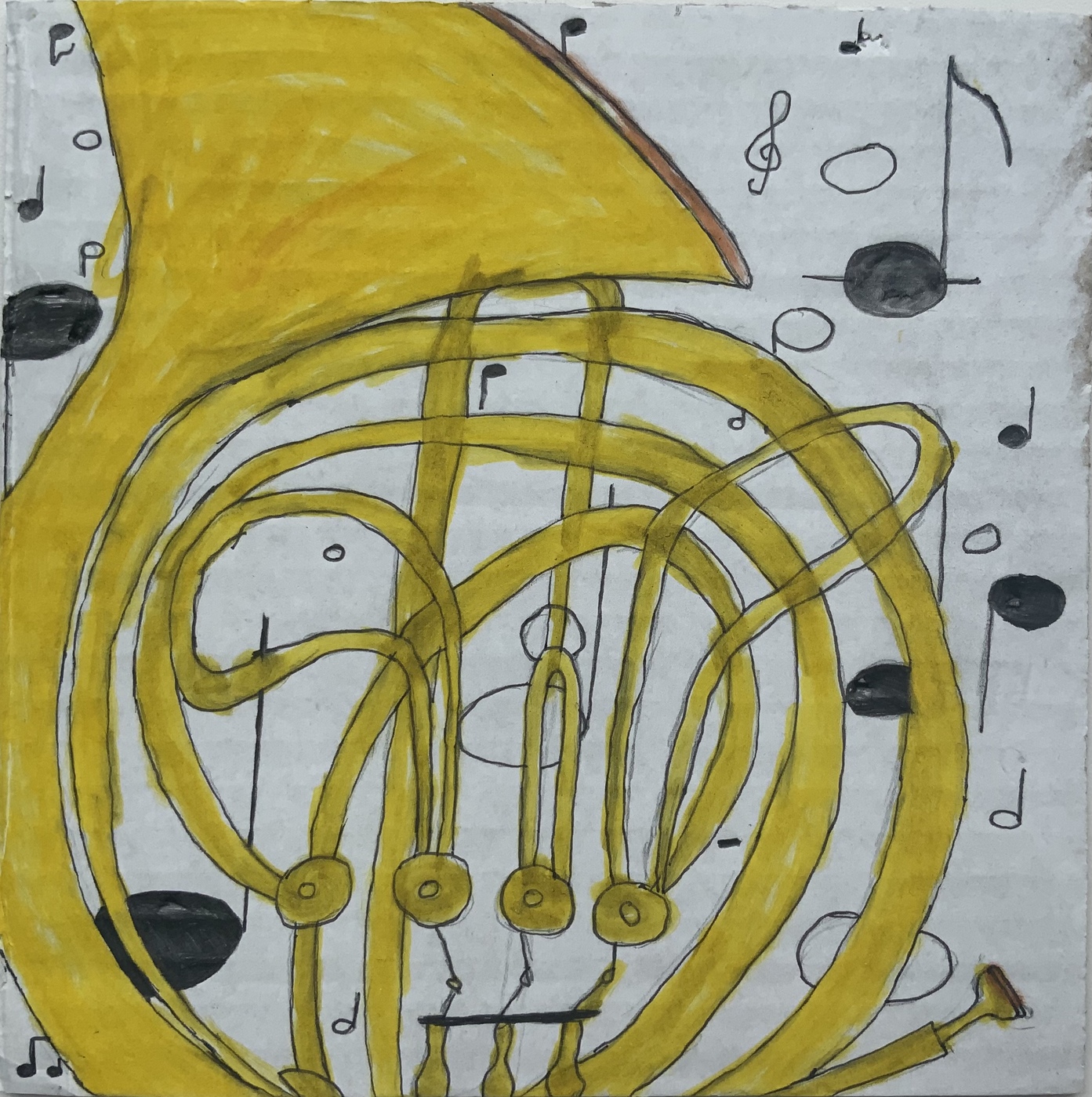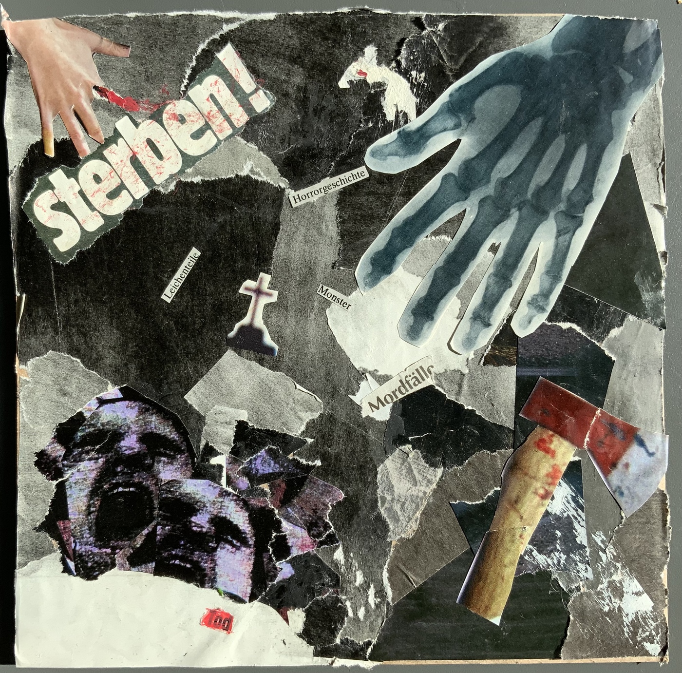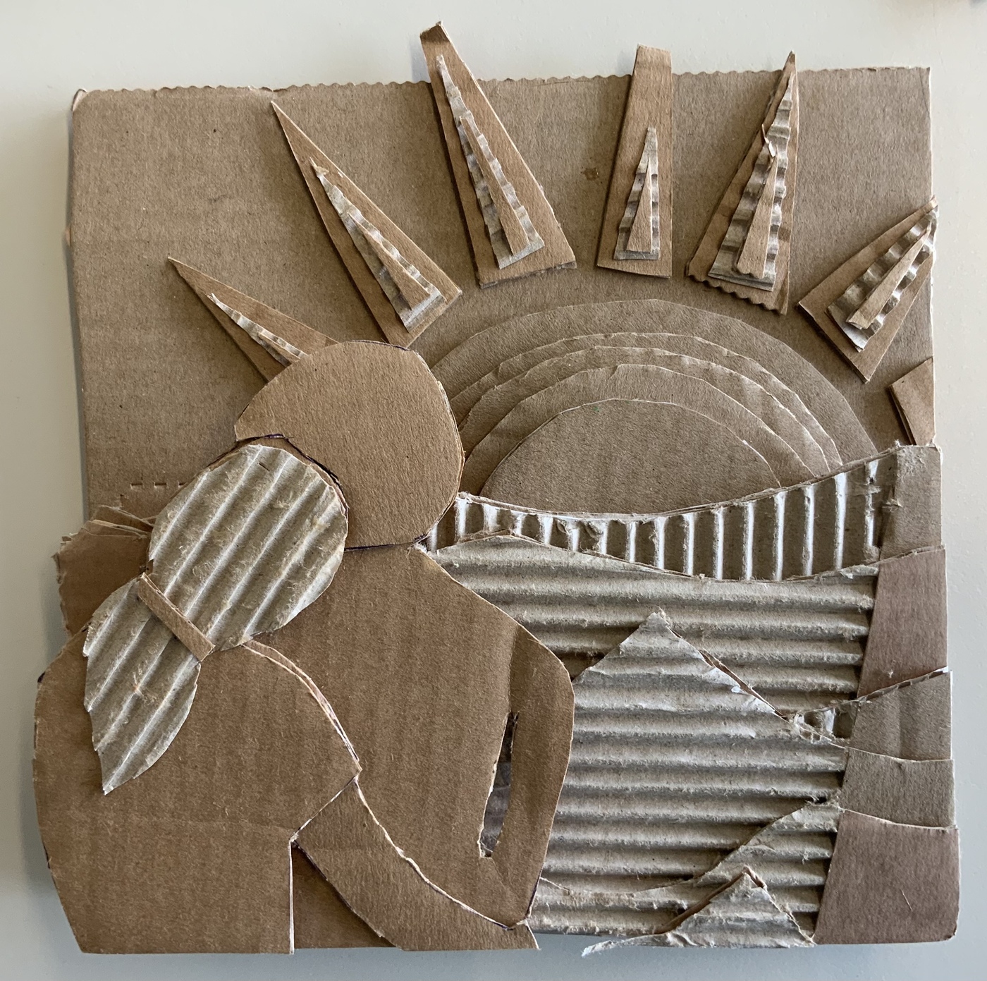 Vielfältig sind auch die Ergebnisse, die zum Ende des Schuljahres im Foyer zu einem Gesamtkunstwerk arrangiert wurden. Und hier begegnen sich nun: Abstrakte Farbflächen, haptische Erlebnisse und figurative Darstellungen, eine große Fülle von Zeichnungen, Comicfiguren, Reliefs, Collagen und Materialbilder mit OP-Masken, Gedichtverse, Sprüche und Musiknoten, Wortsammlungen, mathematische Formeln und sogar ein zerlegter Computer erscheinen auf den Pappquadraten.