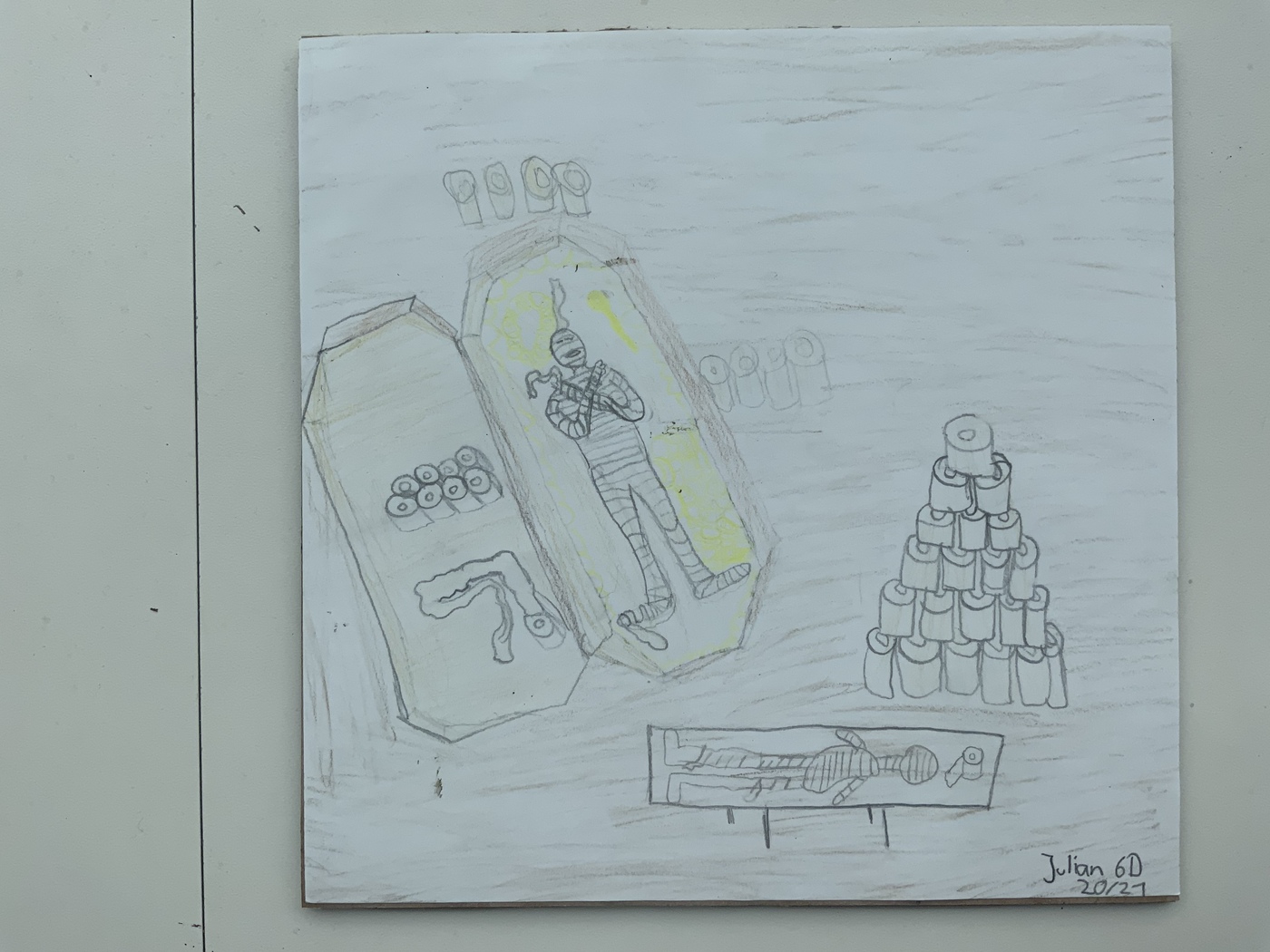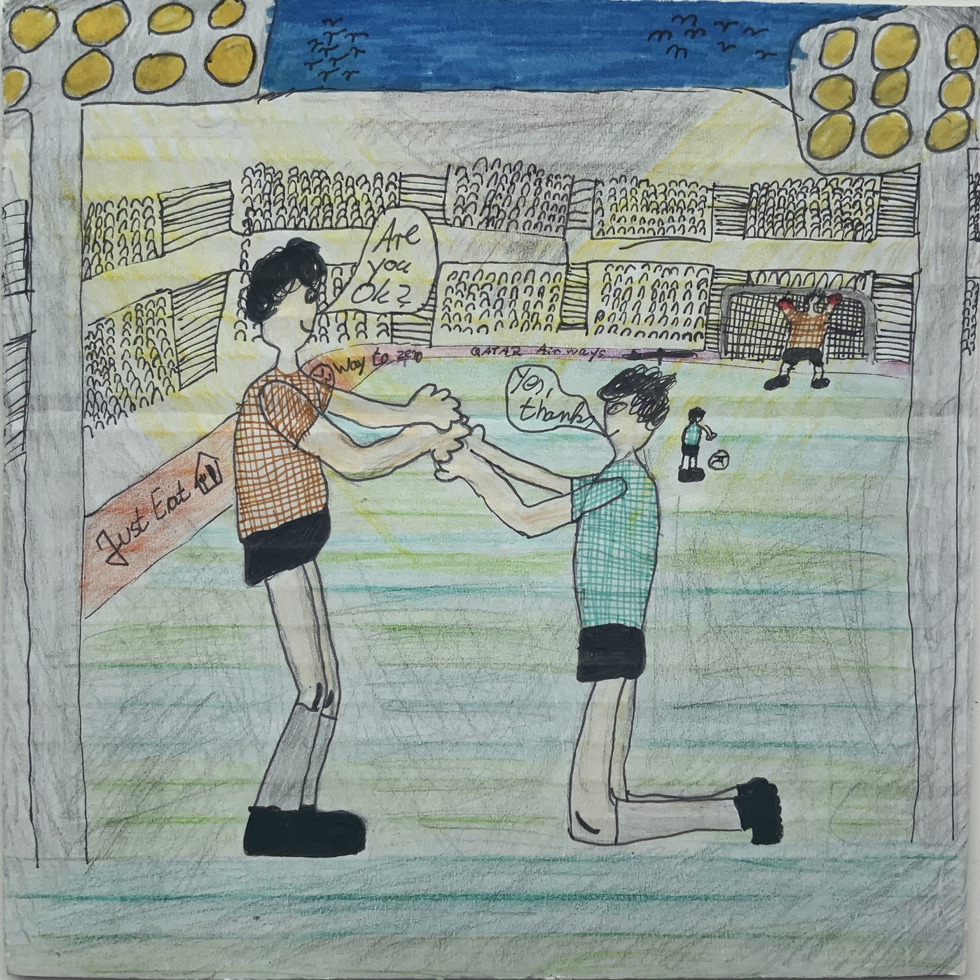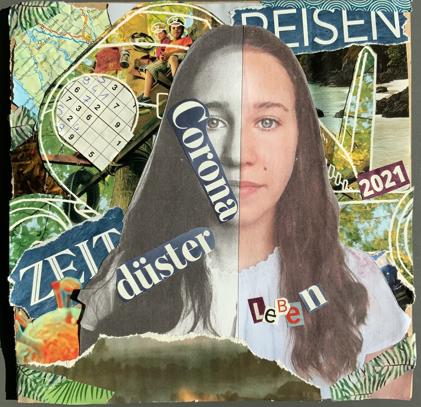 Viele verdeutlichen Ängste, Erfahrungen und Bewältigungsstrategien im Zusammenhang mit der Pandemie. Oft werden auch fehlende Begegnungen thematisiert, geht es um die Sehnsucht, das einst so Normale wie Sport- oder Freitzeitaktivitäten, ja sogar die Schule wieder in Gemeinschaft erleben zu dürfen. Neben ernsten Themen, die auch die Begegnung von uns Menschen mit unserer Umwelt zum Inhalt haben, sind auch lustige, unerwartete Begegnungen visualisiert worden, wie das Trampolin springende Känguru oder die im Pool badende Kuh