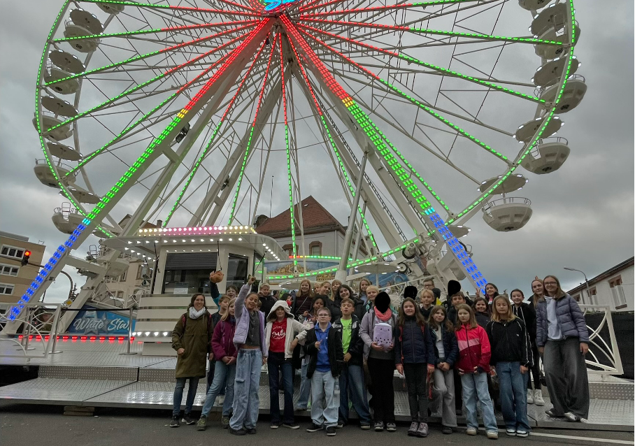 Dazu wurden wir in Gruppen eingeteilt, um verschiedene Aufgaben zu lösen. Das Gewinnerteam wurde mit Süßigkeiten belohnt. Nach der Rallye hatten unsere Lehrerinnen noch eine ganz besondere Überraschung für uns: Jeder durfte auf der Kerwe in der Altstadt einmal mit dem Riesenrad fahren. Das war für die meisten auch das Highlight unseres Minilandschulheims.