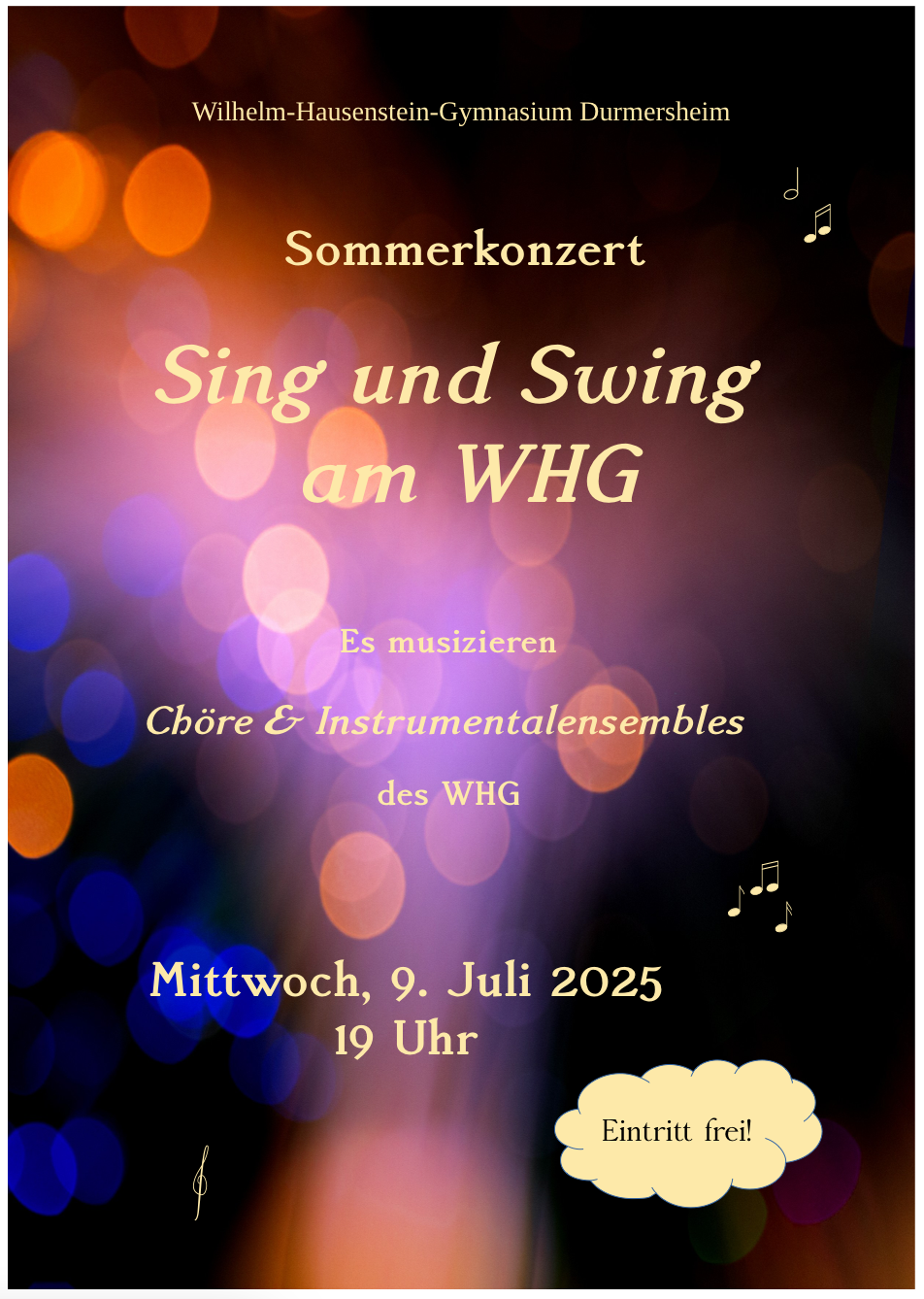Kommen, zuhören und sich anstecken lassen von guter Laune. Alle sind herzlich eingeladen. In der Pause gibt es Gelegenheit, bei einem kühlen Getränk miteinander ins Gespräch zu kommen. Das Konzert beginnt um 19:00 Uhr im Foyer der Schule.