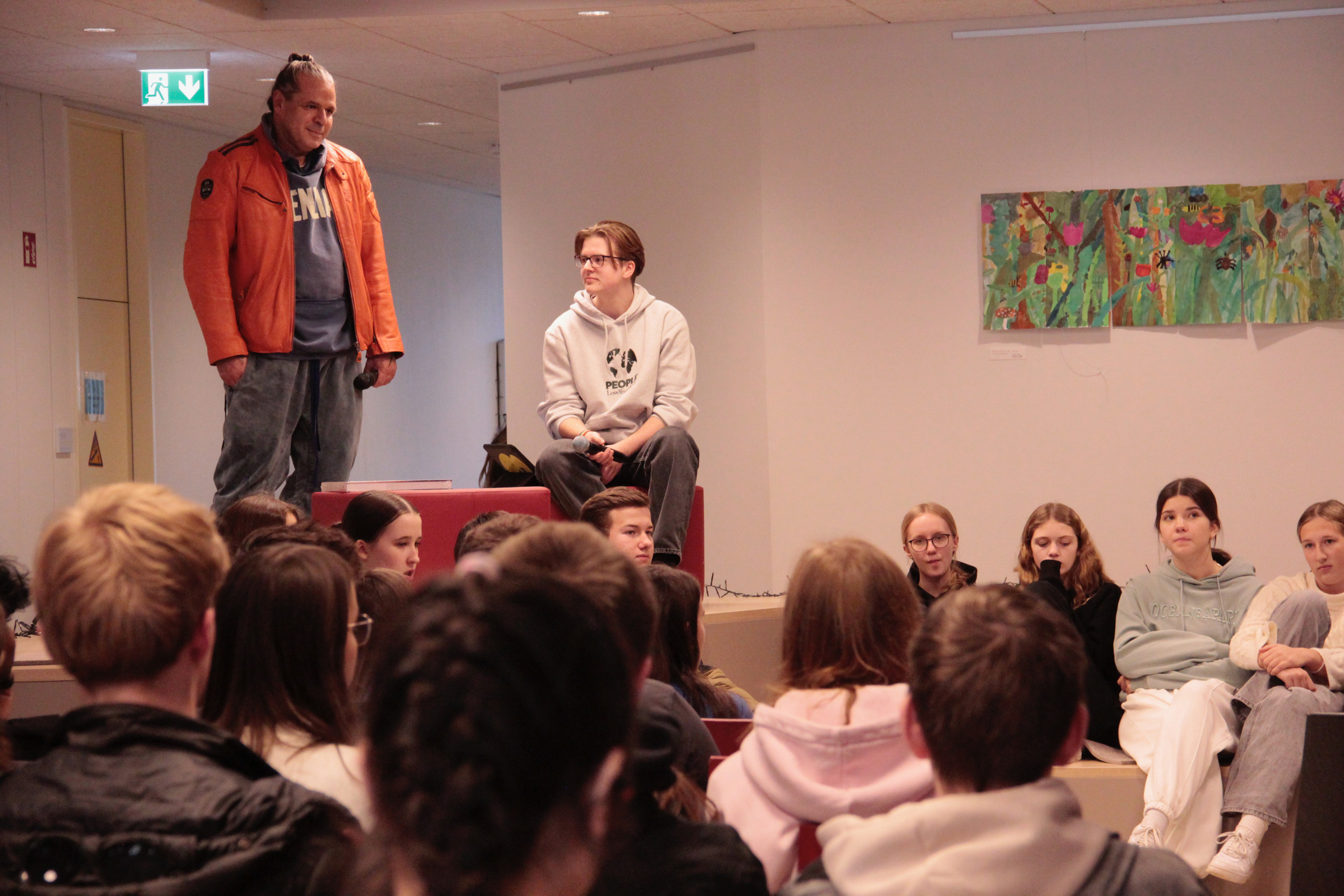 Einige Schüler wollten wissen, wie Toscano überhaupt auf die Idee gekommen sei, sich mit dem Holocaust zu beschäftigen, obwohl sein Name eher italienisch klingt. Er sagte, dass er er zwar italienische Wurzeln habe, aber in Deutschland groß geworden sei und somit auch die deutsche Vergangenheit als Teil seiner eigenen Geschichte sehe.