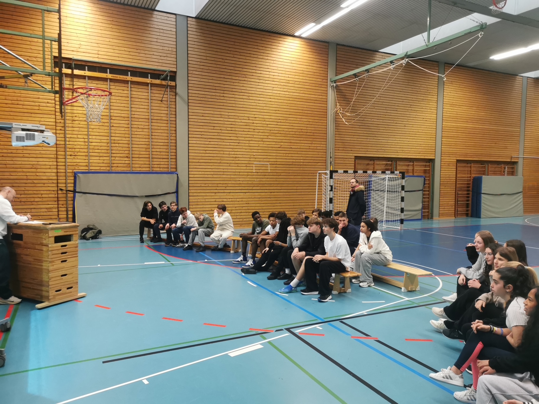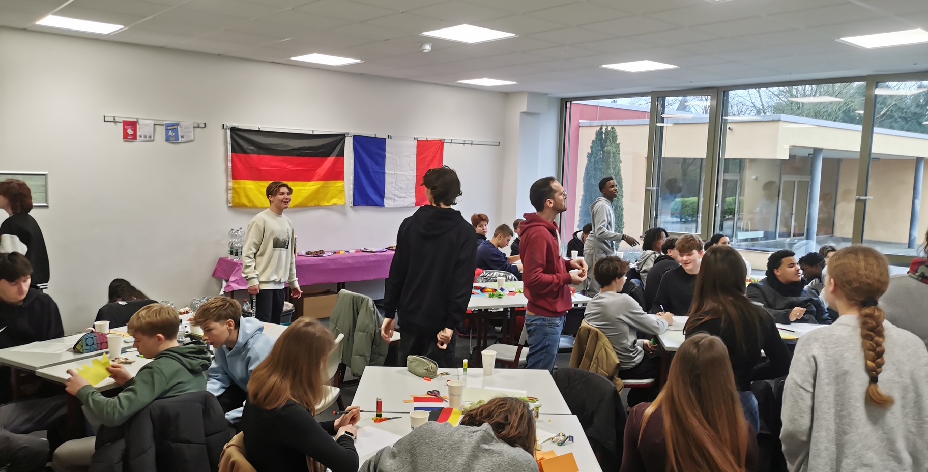 In dieser Woche erkundeten unsere französischen Gäste zum einen Land und Leute in unserer Region. So lernten sie beispielsweise Freiburg im Rahmen einer Stadtführung und einer Stadtrallye kennen oder besichtigten die Studios des SWR in Baden-Baden sowie die schöne Innenstadt. Auf ganz besonderes Interesse und Begeisterung bei unseren Gästen stießen die Weihnachtsmärkte sowie die Adventsbräuche in Deutschland. Zum anderen war es den Organisatoren aber auch wichtig, zahlreiche Gelegenheiten zum direkten Austausch und zur Begegnung zwischen französischen und deutschen Schülerinnen und Schülern zu schaffen. So waren die Schüler aus Chennevières in Gastfamilien untergebracht und lernten so unseren Lebensalltag kennen. Des Weiteren wandten die Jugendlichen im Rahmen der Sprachanimation sowohl die französische als auch die deutsche Sprache an oder lösten in binationalen Teams verschiedene kreative Aufgaben. Auch der Spaß kam nicht zu kurz. So verbrachten die Jugendlichen auch schöne Stunden beim gemeinsamen Pizzaessen, beim Schlittschuhfahren vor dem Karlsruher Schloss oder einen ganzen Tag im Europapark, an den sie sich noch immer sehr gerne erinnern. Die große Bedeutung unseres Schüleraustausches für die schon seit über 50 Jahren andauernde Städtepartnerschaft zwischen Durmersheim und Chennevières zeigte sich zudem im schon traditionellen Empfang im Rathaus, wo Bürgermeister Klaus Eckert, Schulleiter Thomas Dornblüth und Partnerschaftsbeauftragte Andrea Bruder die Schülergruppe herzlich willkommen hießen.