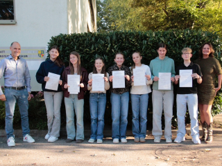 Erstmalig war im Schuljahr 2024/25 eine DELF AG auf Niveaustufe A1 unter der Leitung von Frau Kessel angeboten worden. Sieben Französisch-Lernende aus der Klassenstufe 7 trafen sich wöchentlich, um diese Sprachprüfung, die bei Bestehen mit einem Diplom des französischen Erziehungsministeriums ausgezeichnet wird, vorzubereiten.