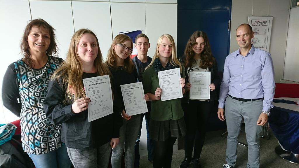 Er sei stolz und voller Sie traf sich einmal pro Woche mit den Schülern der damaligen 9. Klassen Jule Epple, Hanna Oelze und Lea Schorpp sowie Johanna Beikert und Lukas Petri aus der Klasse 10, um die Jugendlichen auf die beiden Prüfungsteile und verschiedenen Aufgabenformate vorzubereiten. Am Samstag, 24.6. führte die Französischlehrerin die schriftliche DELF-Prüfung im WHG durch. Schließlich begleitete sie die Schüler zur mündlichen Prüfung ins Centre Culturel in Karlsruhe.