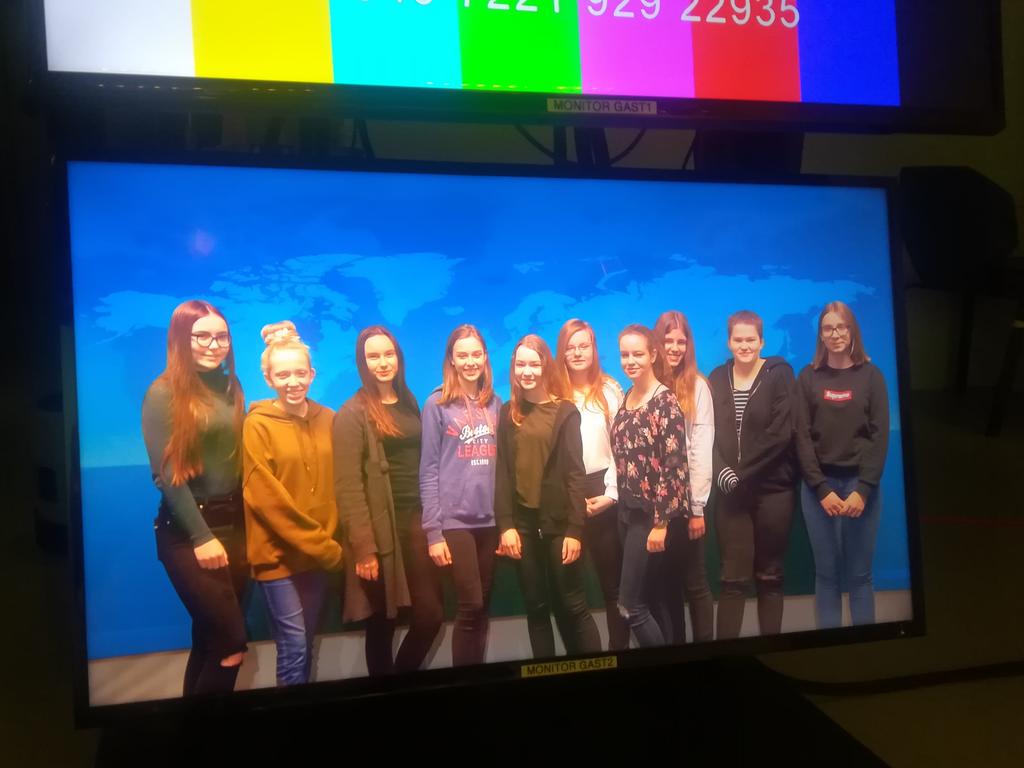 Zuerst gab es eine kurze Präsentation über die Entstehung und den heutigen Aufbau des Rundfunks, also Radio und Fernsehen, in Deutschland. Es wurde aber auch über verschiedene Schummeleien bei Film und Fernsehen aufmerksam gemacht. Nun kam die Führung: Die Klasse wurde in zwei Gruppen aufgeteilt und durch das Gebäude geführt.