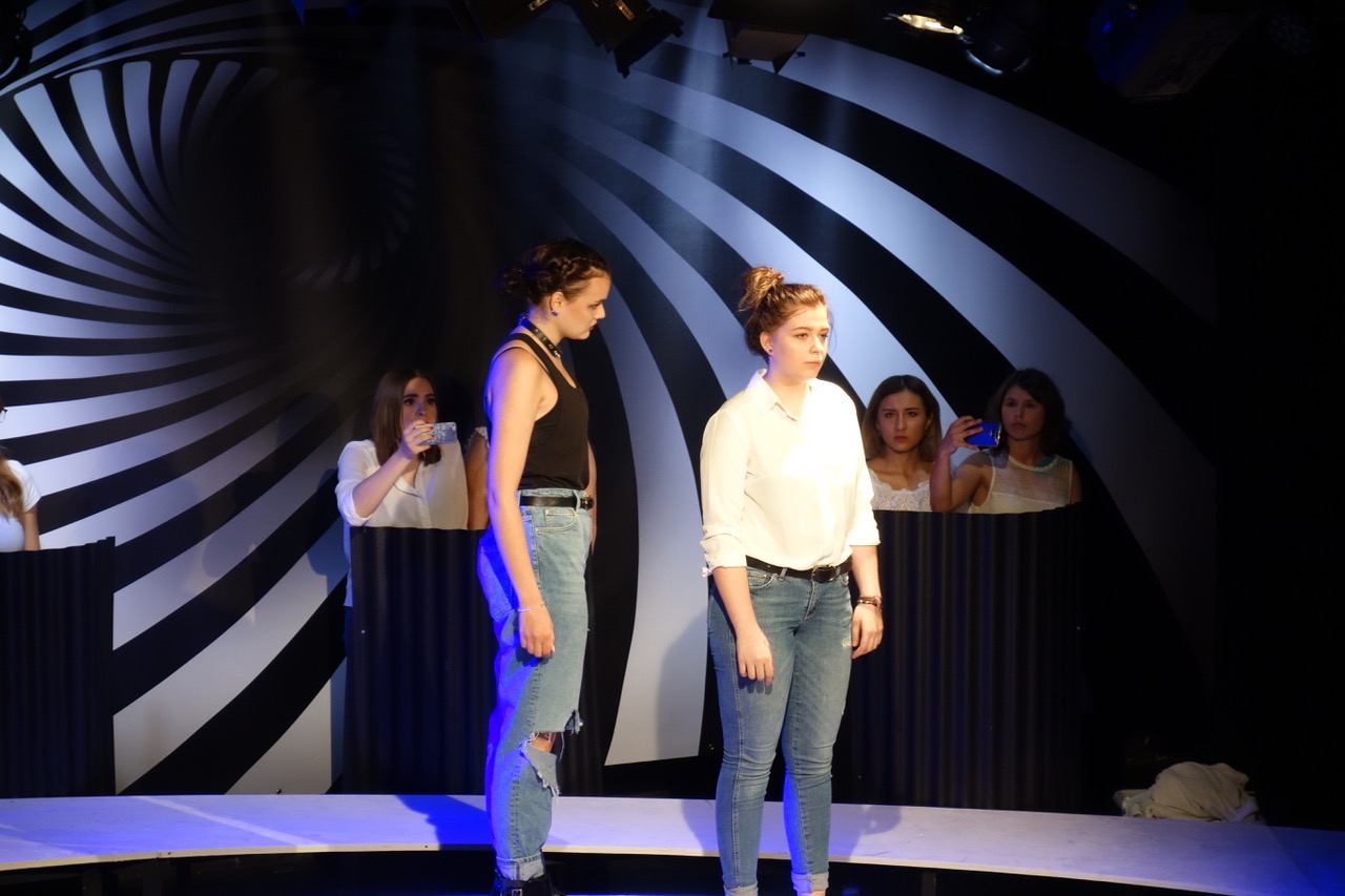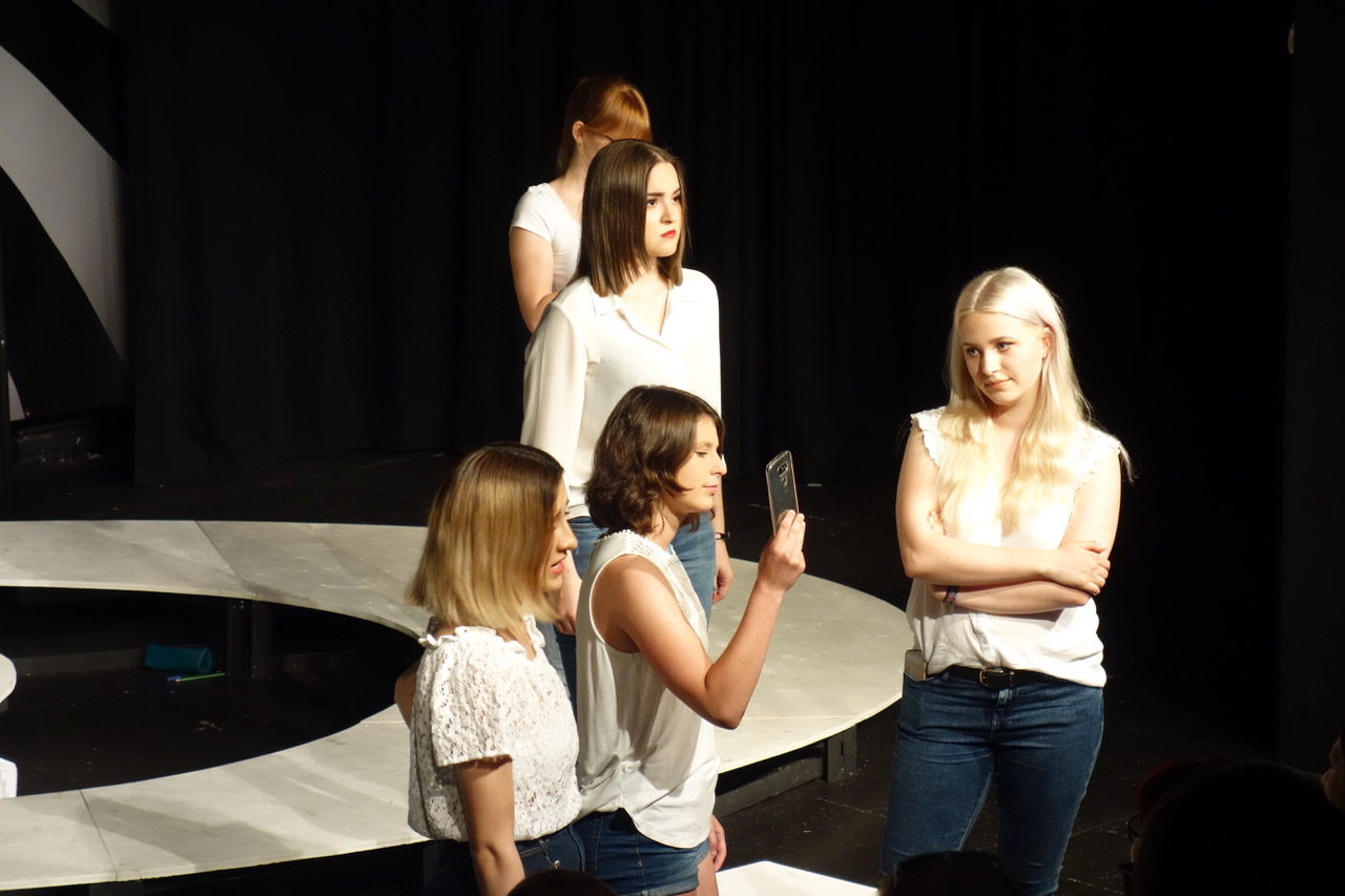 Man nehme eine Hand voll pubertierender junger Frauen, 20 ml Eliteschule, drei Esslöffel Bauernregeln, würze das Ganze mit einer Prise Kraftausdrücken und lasse beim Zubereiten „Weil ich ein Mädchen bin“ in Dauerschleife laufen: Fertig ist eine ereignisreiche Produktion des Literatur und Theaterkurses der J2 am WHG Durmersheim, die mehr unerwartete Wendepunkte enthält, als es Probentage gab (Verhältnis von etwa 5:3). In Evan Placeys „Mädchen wie die“ hält jeder Happen eine ganz neue Geschmacksrichtung bereit. Mal werden Genderklischees ausgeschlachtet, mal werden Publikumserwartungen in der Luft zerfetzt, mal wird der Gesellschaft ein Spiegel vorgehalten …