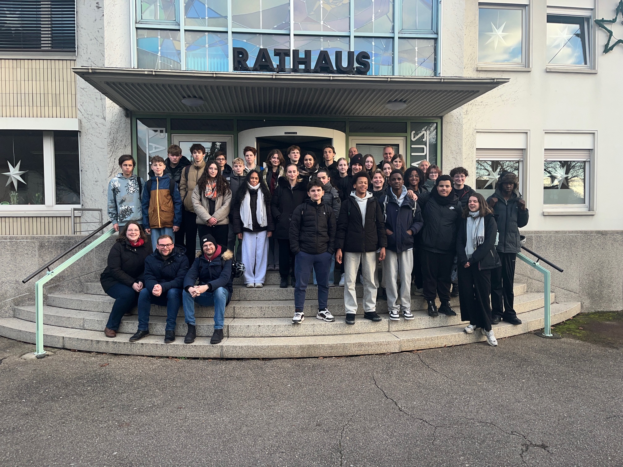 In dieser Woche erkundeten unsere französischen Gäste zum einen Land und Leute in unserer Region. So lernten sie beispielsweise Freiburg im Rahmen einer Stadtführung und einer Stadtrallye kennen oder besichtigten die Studios des SWR in Baden-Baden sowie die schöne Innenstadt. Auf ganz besonderes Interesse und Begeisterung bei unseren Gästen stießen die Weihnachtsmärkte sowie die Adventsbräuche in Deutschland. Zum anderen war es den Organisatoren aber auch wichtig, zahlreiche Gelegenheiten zum direkten Austausch und zur Begegnung zwischen französischen und deutschen Schülerinnen und Schülern zu schaffen. So waren die Schüler aus Chennevières in Gastfamilien untergebracht und lernten so unseren Lebensalltag kennen. Des Weiteren wandten die Jugendlichen im Rahmen der Sprachanimation sowohl die französische als auch die deutsche Sprache an oder lösten in binationalen Teams verschiedene kreative Aufgaben. Auch der Spaß kam nicht zu kurz. So verbrachten die Jugendlichen auch schöne Stunden beim gemeinsamen Pizzaessen, beim Schlittschuhfahren vor dem Karlsruher Schloss oder einen ganzen Tag im Europapark, an den sie sich noch immer sehr gerne erinnern. Die große Bedeutung unseres Schüleraustausches für die schon seit über 50 Jahren andauernde Städtepartnerschaft zwischen Durmersheim und Chennevières zeigte sich zudem im schon traditionellen Empfang im Rathaus, wo Bürgermeister Klaus Eckert, Schulleiter Thomas Dornblüth und Partnerschaftsbeauftragte Andrea Bruder die Schülergruppe herzlich willkommen hießen.