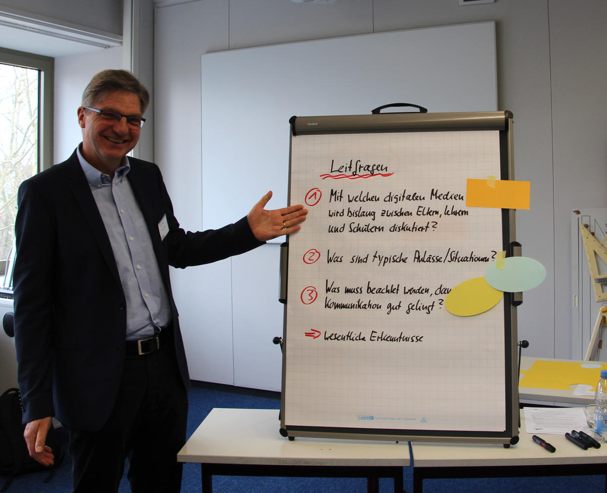 Doch wie geht es weiter? Dieser Frage widmete sich der von Herr Dornblüth geleitete Abschluss des Tages, da Ideen bekanntlich auch einer Umsetzung benötigten. Im Bereich digitale Medien versprach man sich eine schnelle Lösung, während andere komplexe Themen eine längere Bearbeitung bräuchten, wie zum Beispiel einen Leitfaden für die Kommunikation zwischen Eltern und Lehrern zu erstellen.